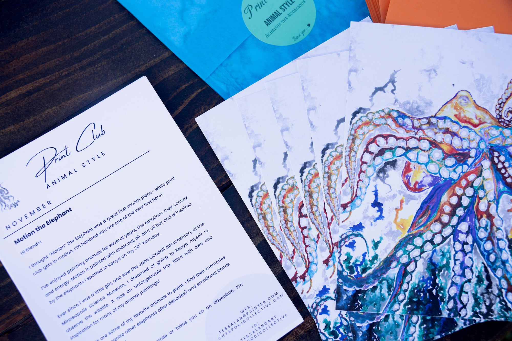 Each envelope will include a surprise fine art animal print, signed by the artist (me,) and monthly letter. Thank you for loving my art & animal paintings!